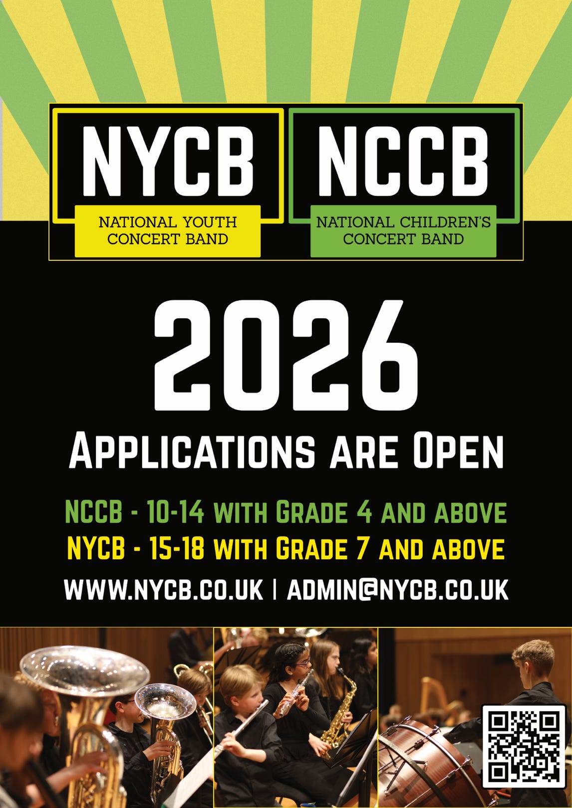 We’re excited to announce details for our 2026 Programme. The Spring Programme for the National Children’s Concert Band and the National Youth Concert Band will this year be held in The Bedford School from 28th March to 4th April, with a concert at the Royal Birmingham Conservatoire on the 4th April.